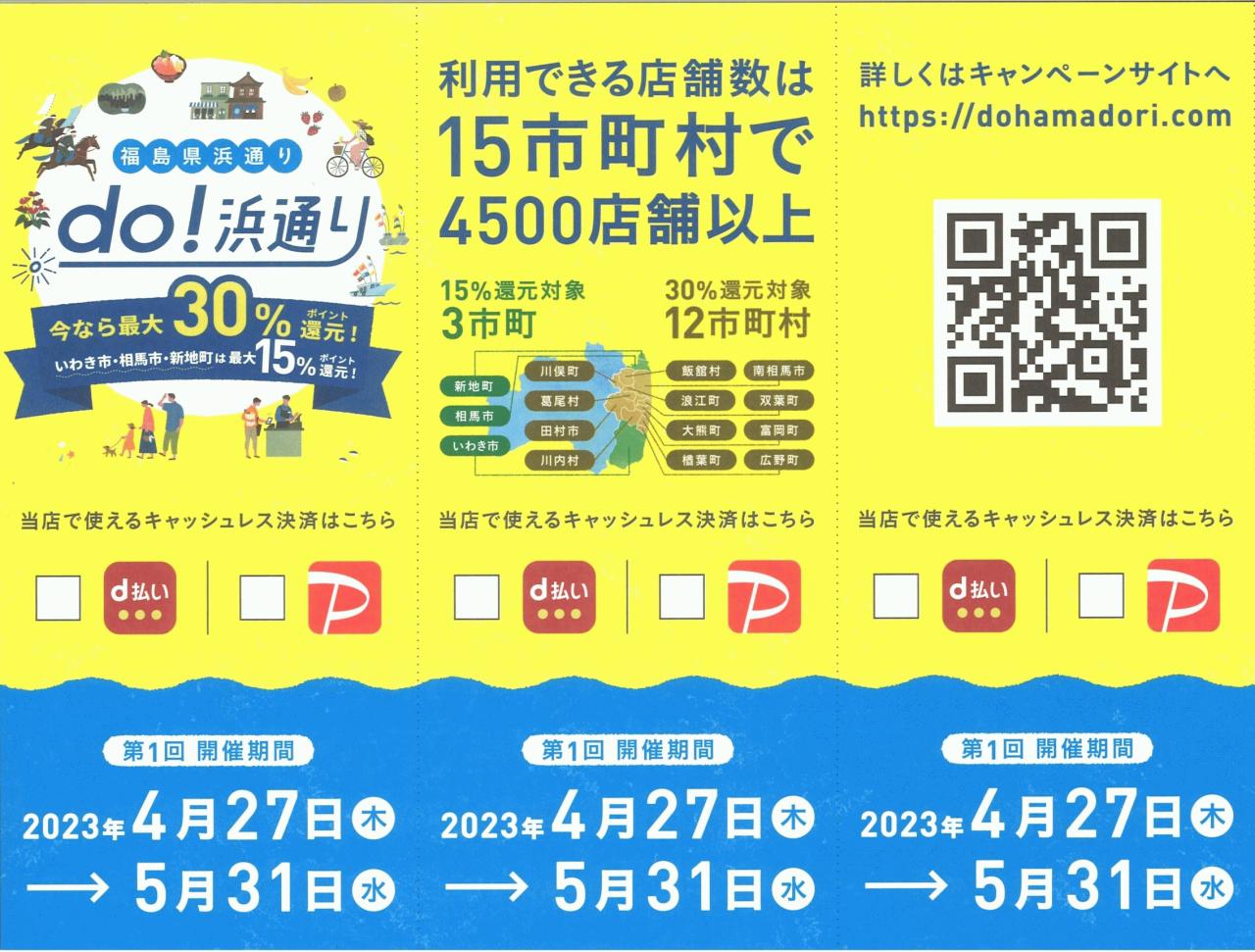 【お得情報】キャッシュレス決済でお得☆「do!浜通り」最大15%還元キャンペーン(4/27~5/31)