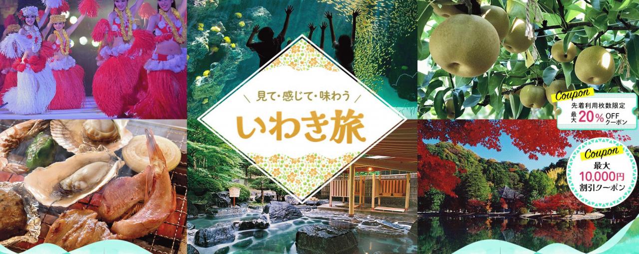 ・楽天トラベル発行のいわき市で使える「見て・感じて・味わういわき旅」クーポンは楽天トラベルでの予約にのみご利用可能です。