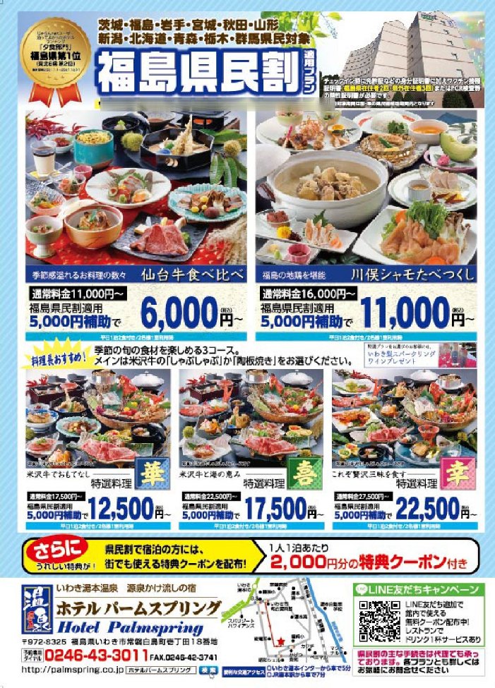 事前カード決済、ポイント、クーポン利用も福島県民割利用の際は規定によりお控えいただいております。