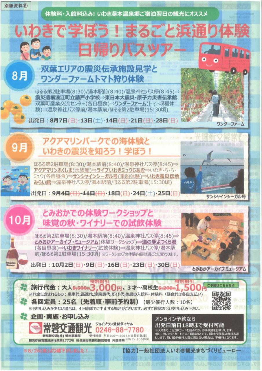 【観光案内】「いわきで学ぼう!」のバスツアーのご案内